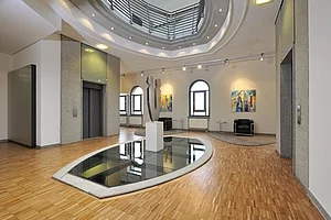 Die Erweiterung und Umstrukturierung der Kanzlei im Hinblick auf effiziente Arbeitsabläufe umfasste eine Fläche von ca. 4000m². In diesem Zuge wurde auch der Empfang- und Besprechungsbereich neu gestaltet. Dieser zentrale Ort ist Kommunikationszentrum und repräsentativer Empfang gleichermaßen. Die Besprechungszimmer wie Empfang berücksichtigen das Corporate Design der Kanzlei Sonntag & Partner. Die nun zentral angeordneten Besprechungsräume sind mit modernster Medientechnik ausgestattet. Alle Besprechungszimmer sind in Medienausstattung und Gestaltung individuell verschieden, jedoch in ihrer schlichten Eleganz und Qualität gleichwertige Perlen auf einer Schnur. Eine diskrete, moderne Behaglichkeit wurde erreicht.
