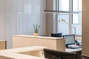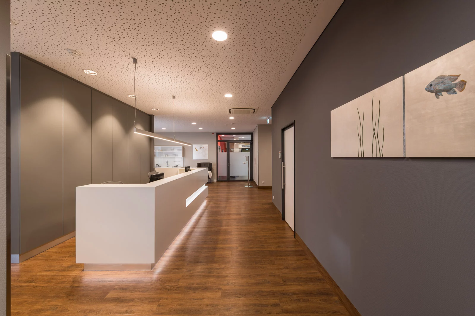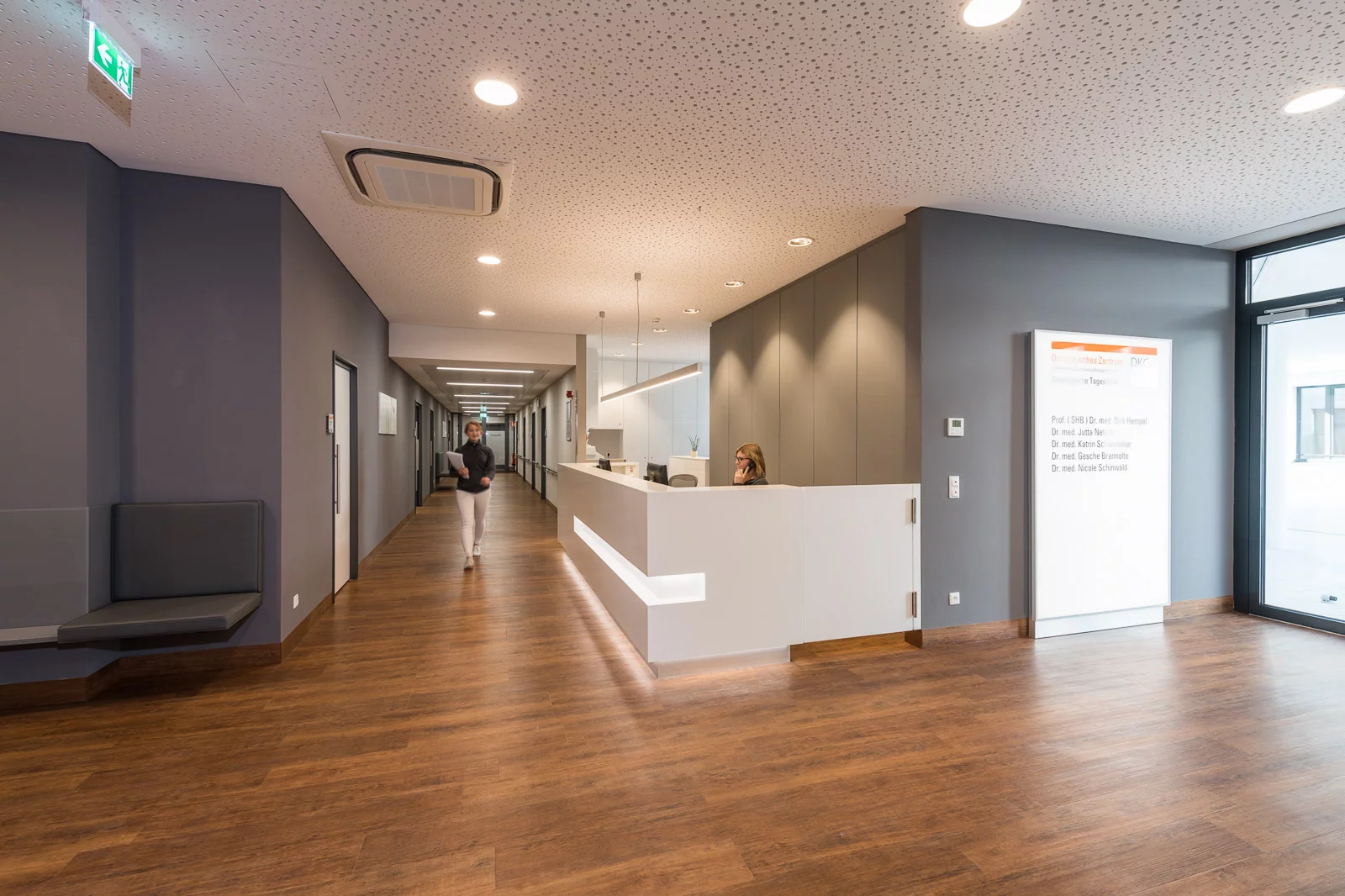 Die Tagesklinik muss für die Patienten einen sicheren und vertrauenerweckenden Raum mit Wohlfühlcharakter darstellen. Dezente, ruhige und warme Farben, schlichte Formen, pflegeleichte und dennoch haptisch angenehme Materialien - das sind unsere Gestaltungsansätze für dieses Projekt.