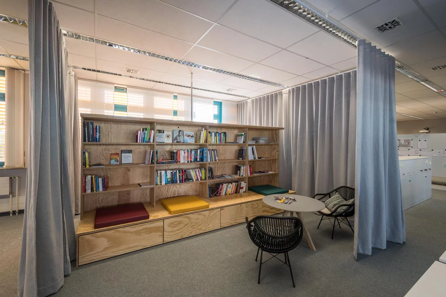 Das schnell wachsende IT-Unternehmen Xitaso wollte seine Bürofflächen um mehr als das Doppelte vergrößern. Dabei musste die Zusatzfläche von ca. 2.000 m² in einem 70er-Jahre-Altbau den Ansprüchen des Unternehmens an heutige offene Teamarbeitsflächen und gleichzeitige Rückzugsmöglichkeiten für Konzentration und Gespräche gerecht werden. Dazu kommen Sozialflächen mit vielfältigen Nutzungen.