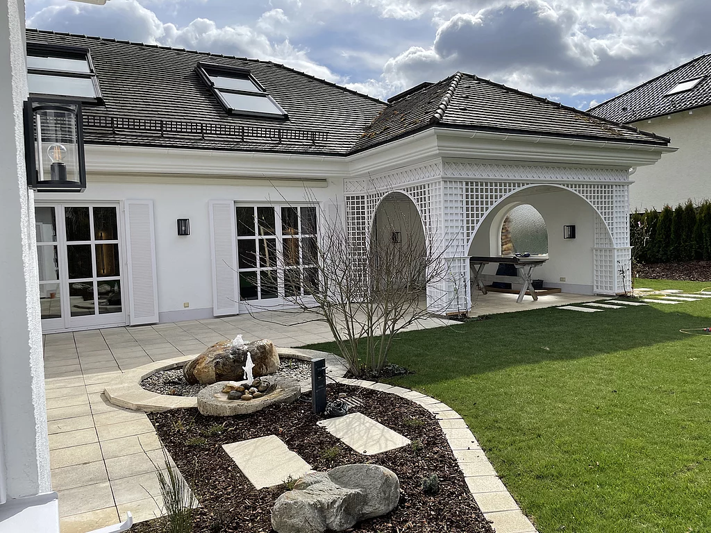 Leistung: Innenausbau und Inneneinrichtung einer Privatvilla sowie Planung der Außenanlagen mit Terrasse, LPH 1-8