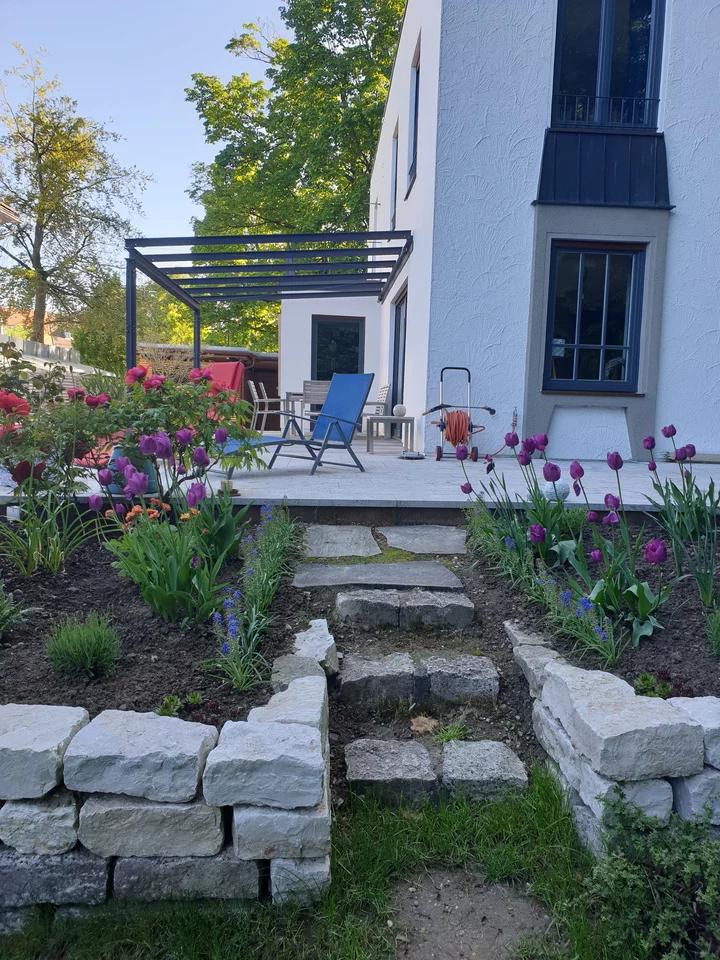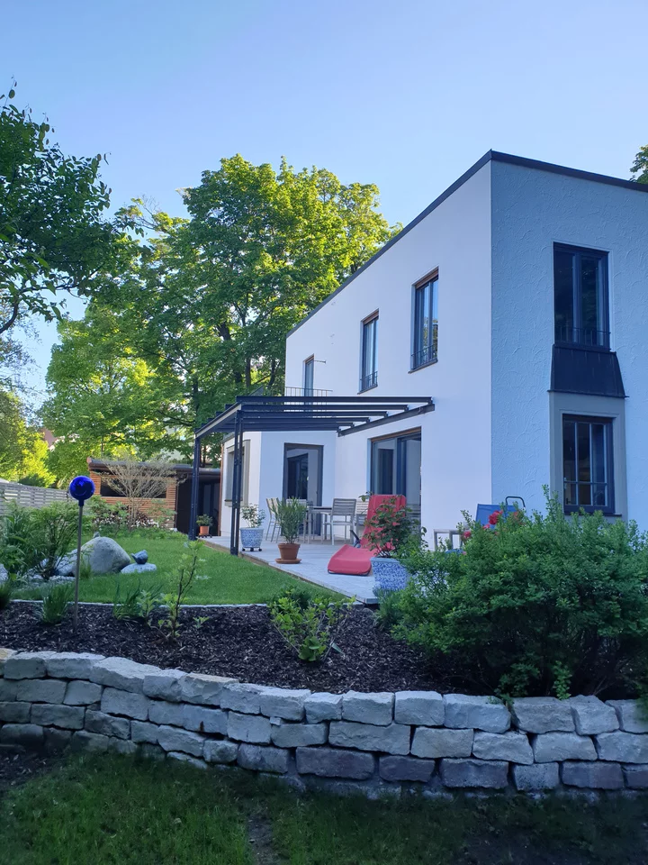 Leistung: Sanierung, Fassade, Innenausbau, Inneneinrichtung und Außenanlagen