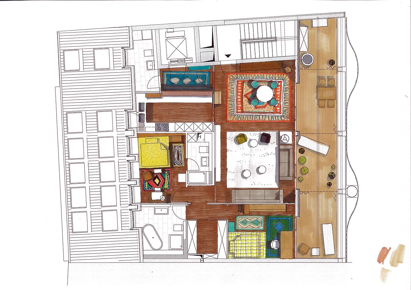 Die neue Penthouse-Wohnung bot sehr gute Voraussetzungen für das Bauvorhaben: geradlinig-moderne, hochwertige Architektur, einen großen Wohn-Essbereich mit raumhoher Verglasung, eine weiträumige, teilüberdachte Terrasse mit freiem Blick über die Dächer, einen separaten „intimen“ Wohntrakt und nicht zuletzt einen bequemen privaten Aufzug.